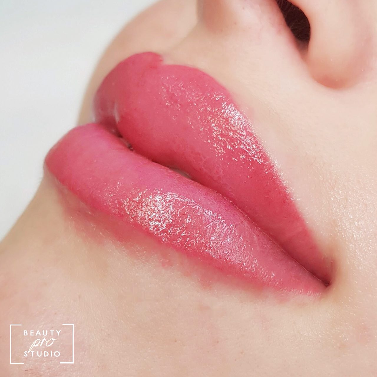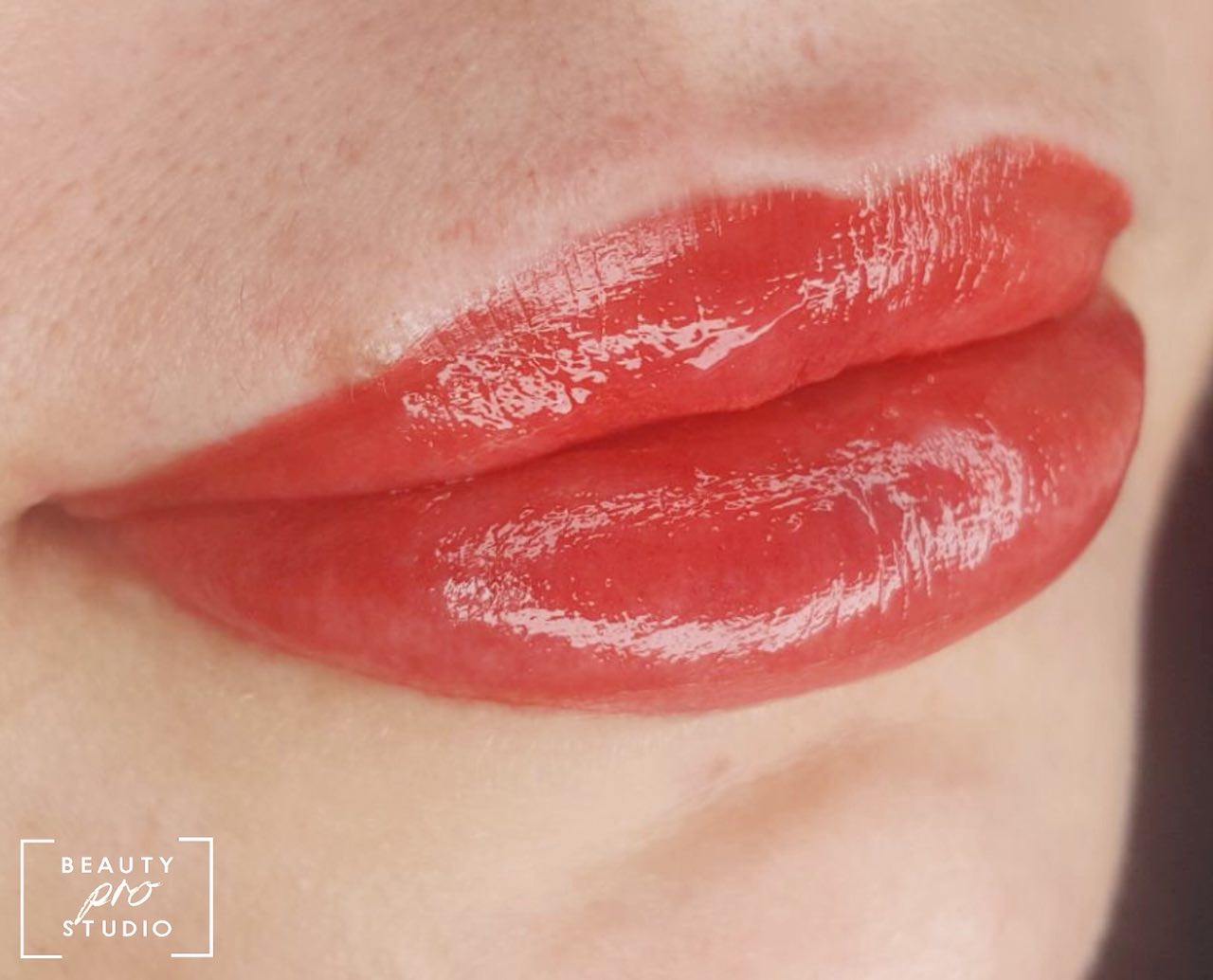 Благодаря полному заполнению, есть возможность скорректировать форму губ, создать эффект губной помады